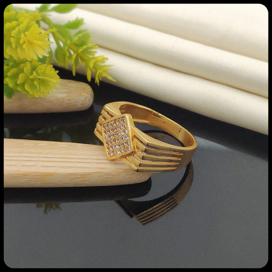 Attractive Diamond Design Men's Finger Ring with Gold Plated Brass (JR_010)