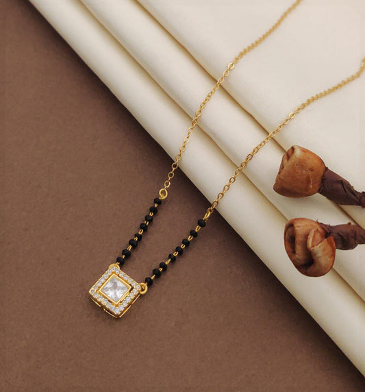ADORABLE OVAL SHAPE AMERICAN DIAMOND GOLD PLATED MANGALSUTRA
