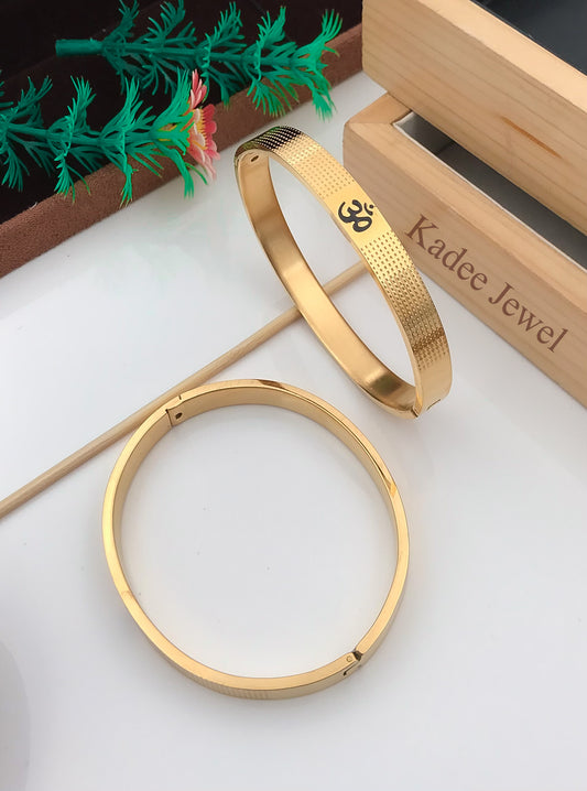 Unique Om Design Men's Gold Kada Bracelet