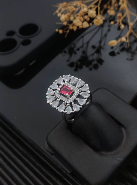 Classic Gems Women's Finger Ring with Silver Plated Brass