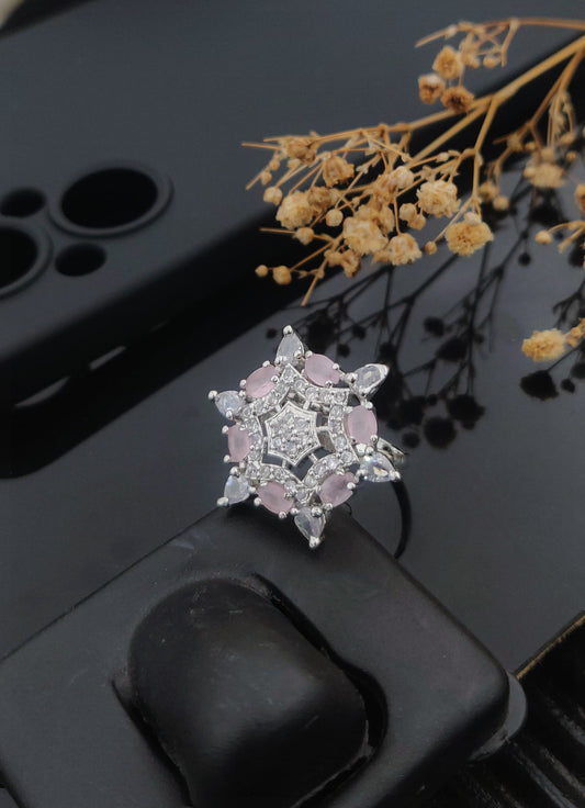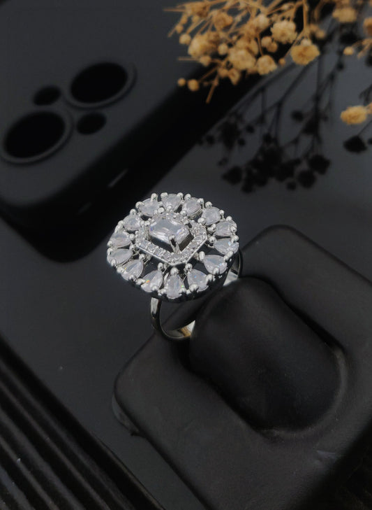 Dainty Gems Women's Finger Ring with Silver Plated Brass