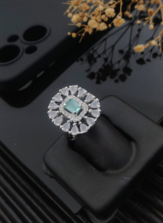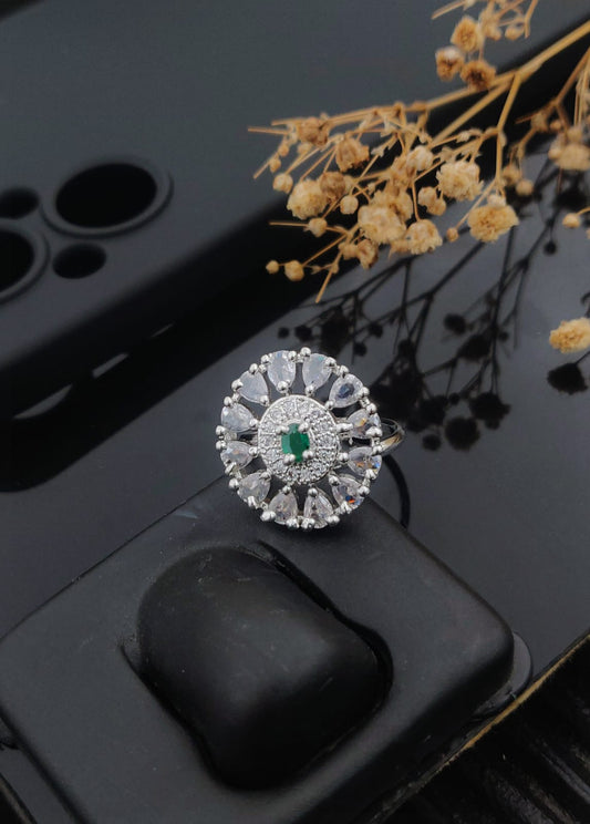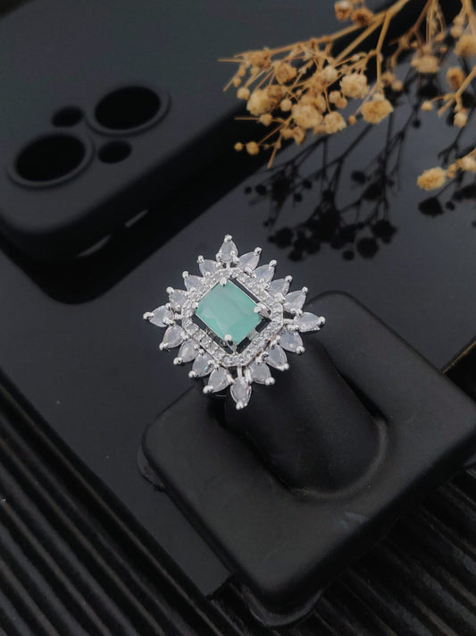 Embellished Gems Women's Finger Ring with Silver Plated Brass