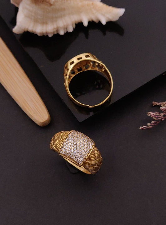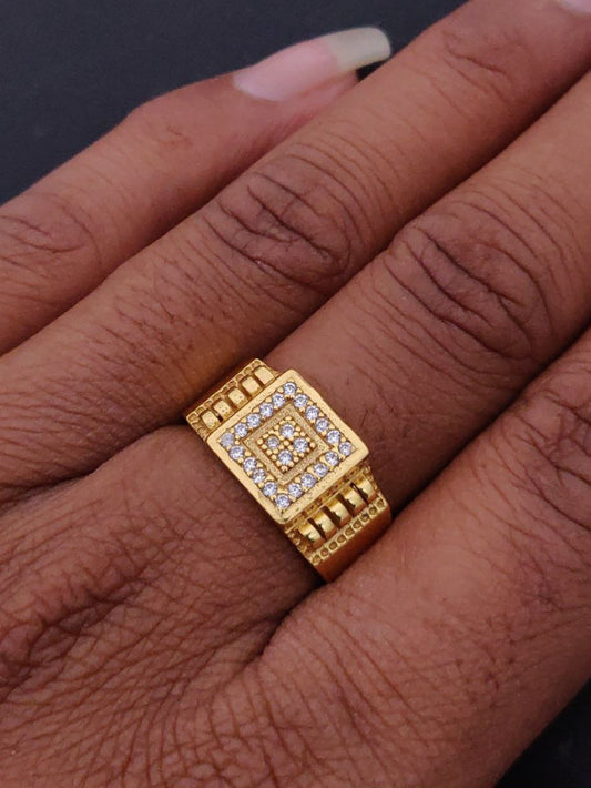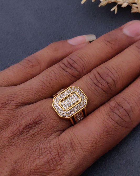 Kadee Jewel Diamond Luxe Men's Finger Ring with Gold Plated Brass