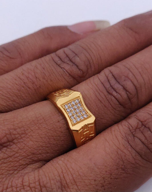 Kadee Jewel Bold Edge Men's Finger Ring with Gold Plated Brass