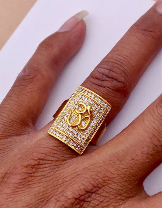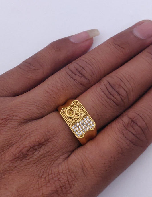 Kadee Jewel Om Daimond Men's Finger Ring with Gold Plated Brass