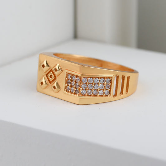 Kadee Jewel Diamond Edge Men's Finger Ring with Gold Plated Brass