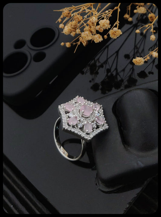 Aesthetics Diamond Women's Finger Ring with Silver Plated Brass