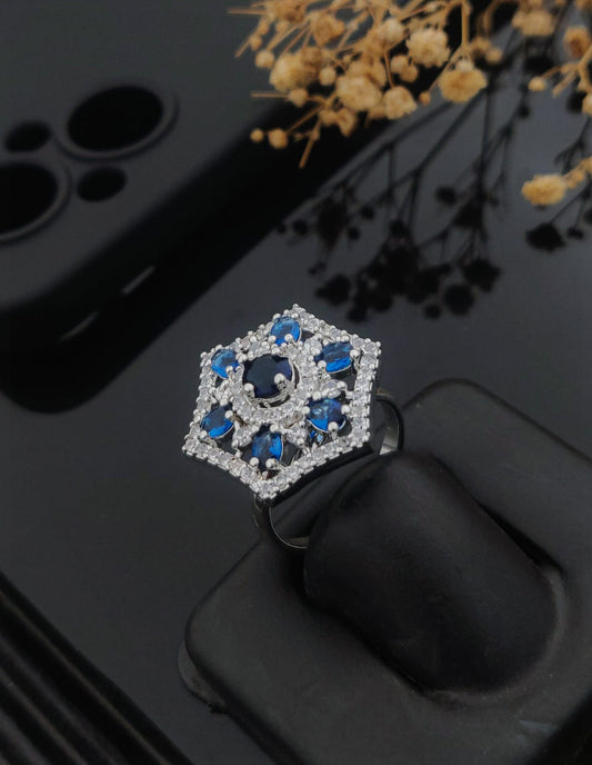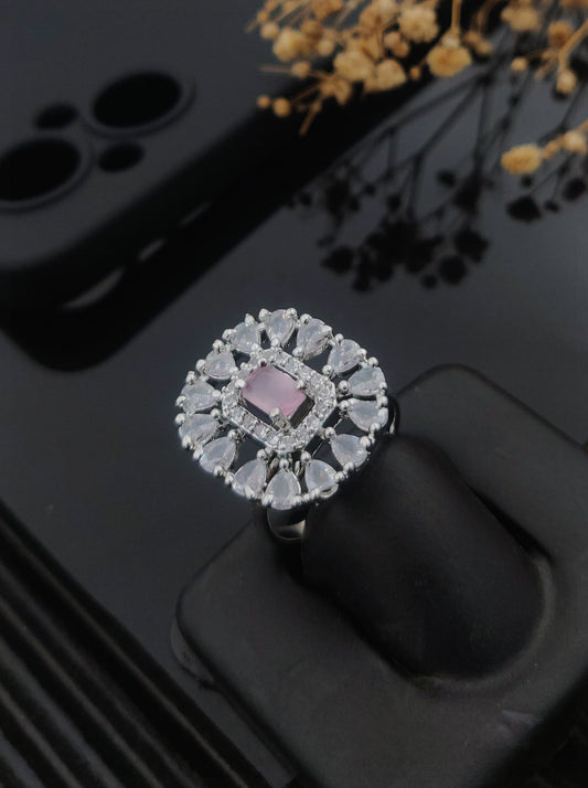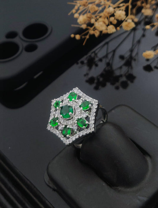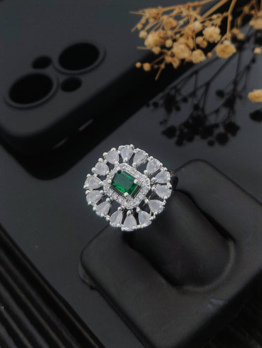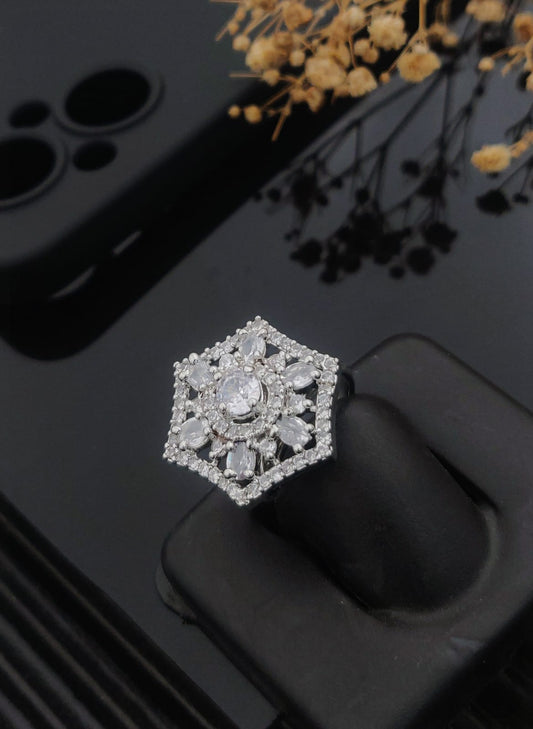 High-End Shine Gems Women's Finger Ring with Silver Plated Brass