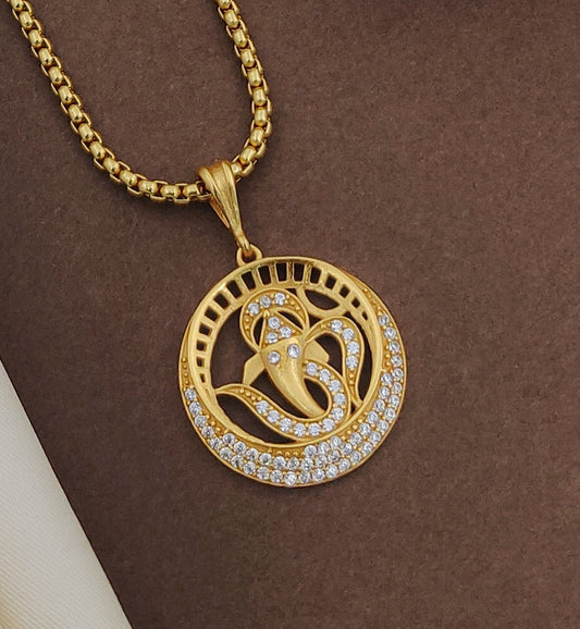 Kadee Jewel God Of Ganesha Gold Unisex Pendant With Gold Chain