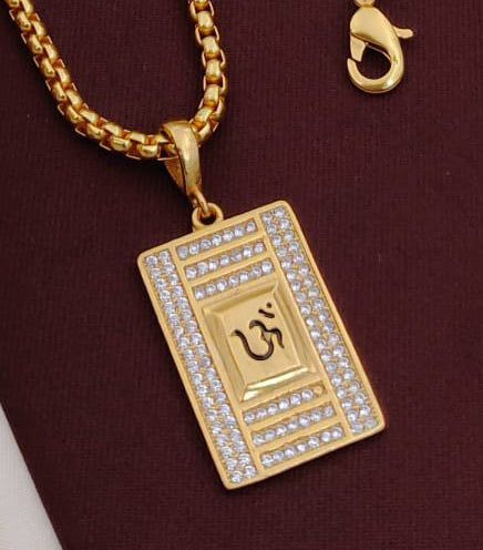 Kadee Jewel Om design Gold Plated with American diamond Men Pendant With Chain